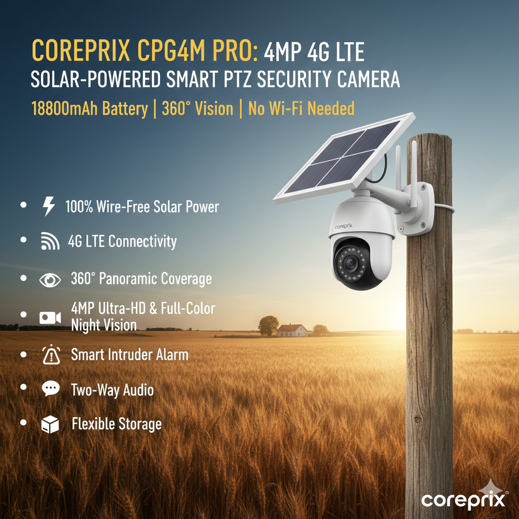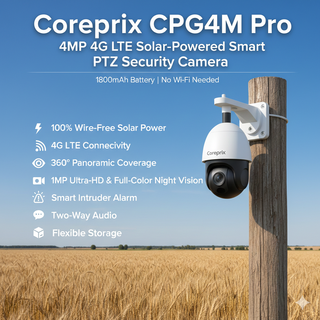 Stop worrying about power outages or Wi-Fi range. The Coreprix CPG4M is a self-sustaining security powerhouse designed for the toughest environments. Whether you are monitoring a remote farmhouse, a busy construction site, or a sprawling garden, this camera stays vigilant so you don’t have to.