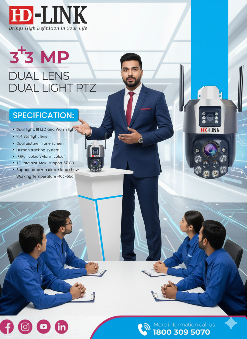 The HD-LINK E24 is not just a camera β itβs a complete surveillance powerhouse designed for both home and professional environments. With two 3MP lenses working together, this dual-lens PTZ camera offers simultaneous multi-angle viewing in ultra-high-definition.