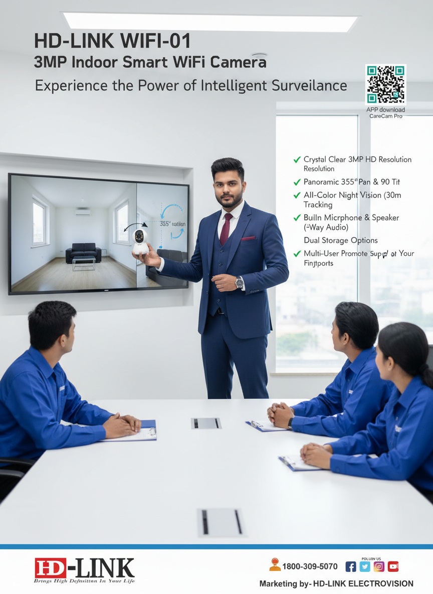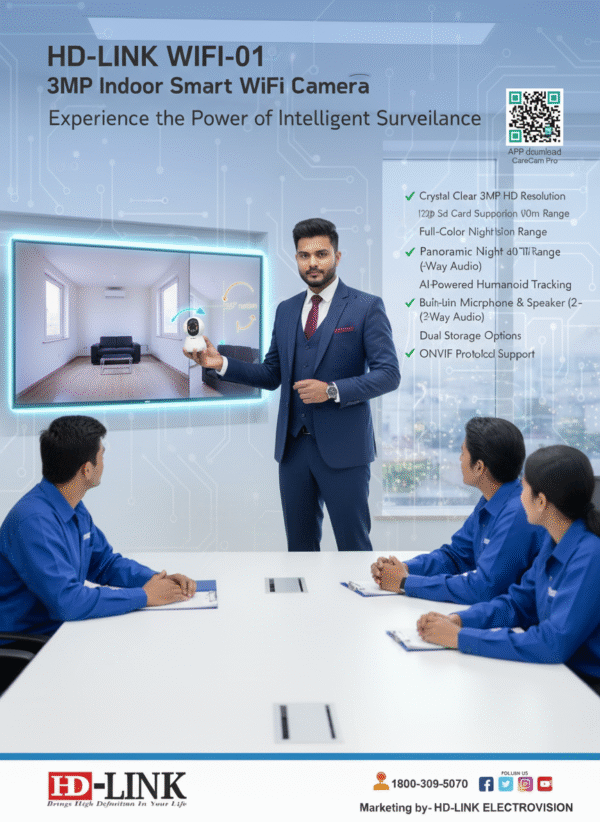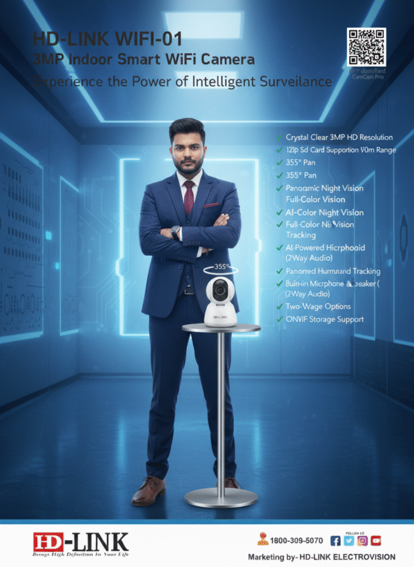 Secure your home the smart way with the HD-LINK WIFI-01 β a powerful, AI-enhanced wireless indoor camera with 3MP HD video, 355Β° rotation, full-color night vision, motion tracking, and multi-user app access. Elegantly designed for modern living.