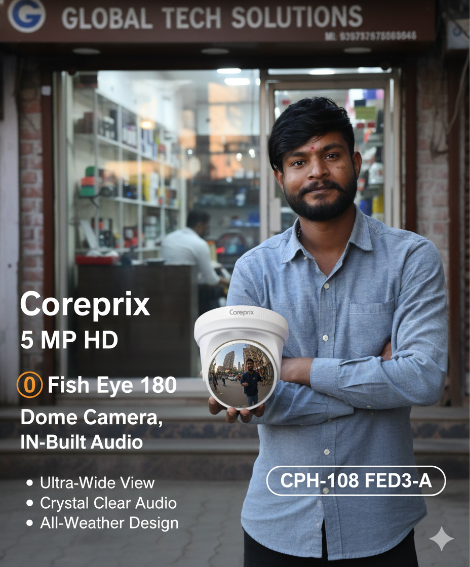 Tired of installing 3 or 4 cameras just to see one room? The Coreprix 5MP HD Panoramic Dome is engineered to replace multiple units with its specialized 180° Ultra-Wide Lens. Whether it’s a retail store, a large living room, or a busy office, this camera provides a wall-to-wall perspective that traditional cameras simply can’t match.