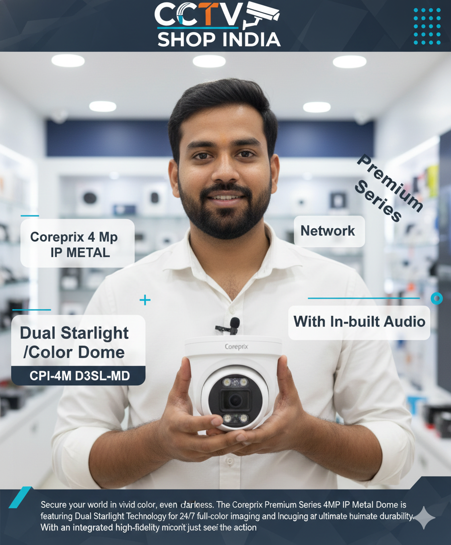 Coreprix Premium 4MP Metal IP Dome Camera – Dual Starlight Full-Color Night Vision with Built-in Audio